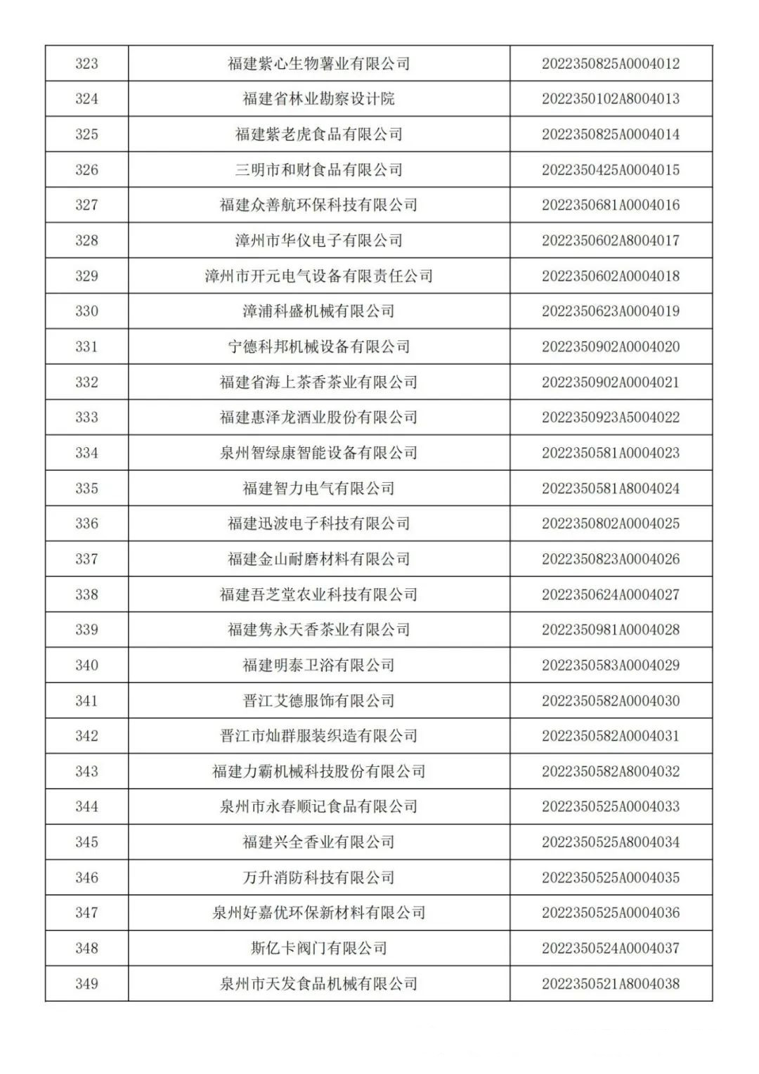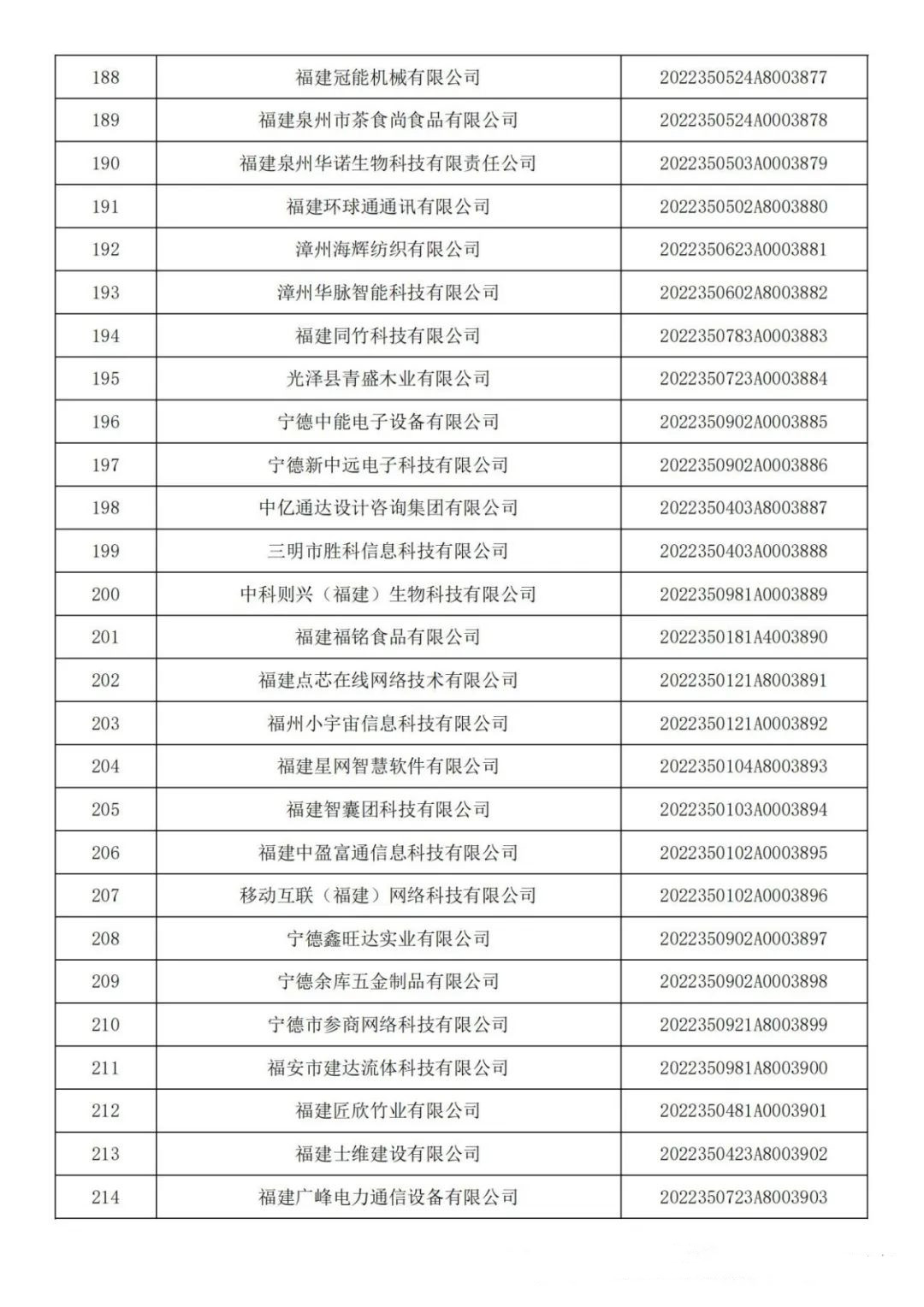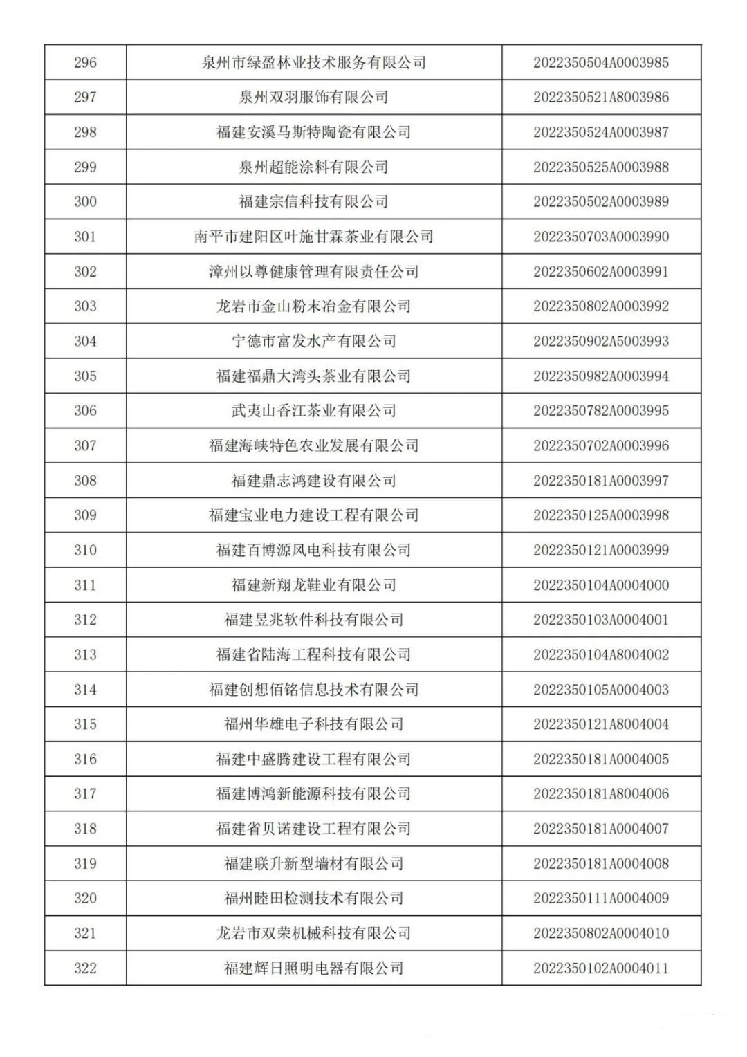 各有關(guān)單位: 根據(jù)《科技型中小企業(yè)評價辦法》(國科發(fā)政〔2017〕115號)和《科技型中小企業(yè)評價服務(wù)工作指引》(國科火字〔2022〕67號)要求,經(jīng)公示通過,現(xiàn)將福建省2022年第六批入庫的388家科技型中小企業(yè)名單(詳見附件)予以公告。 附件:福建省2022年第6批入庫科技型中小企業(yè)名單