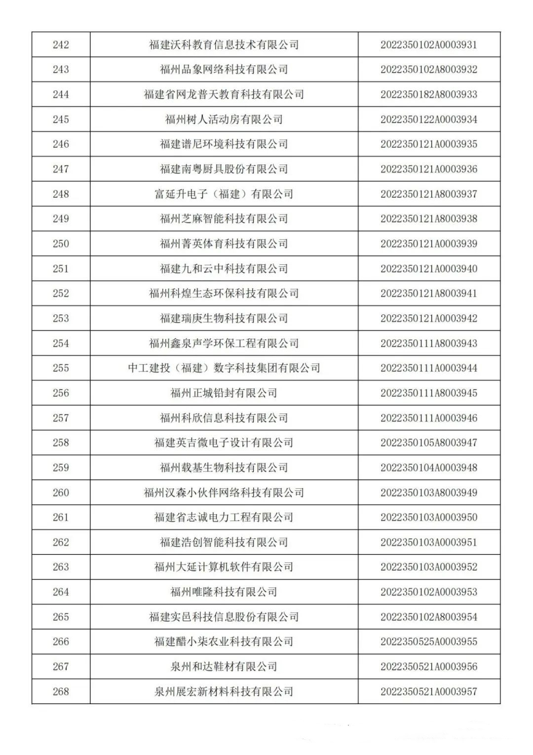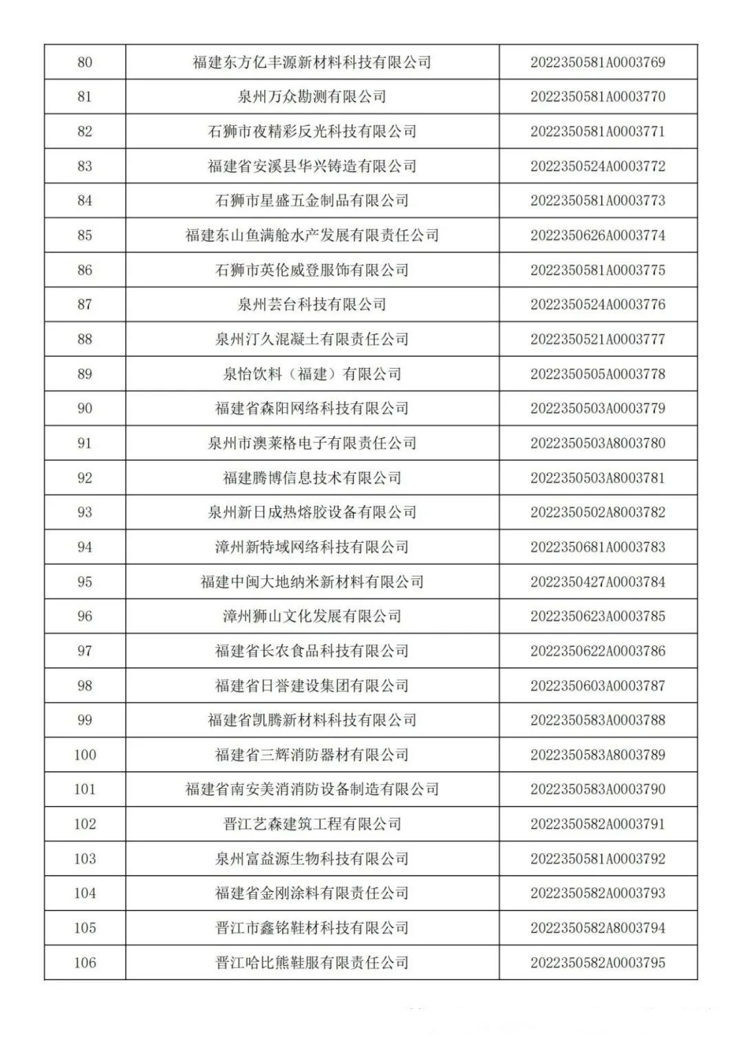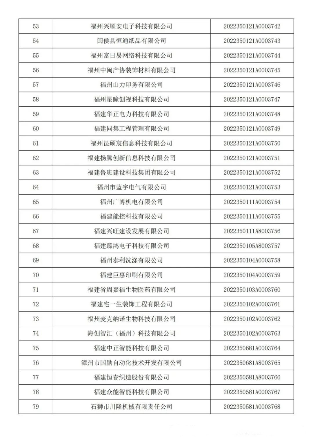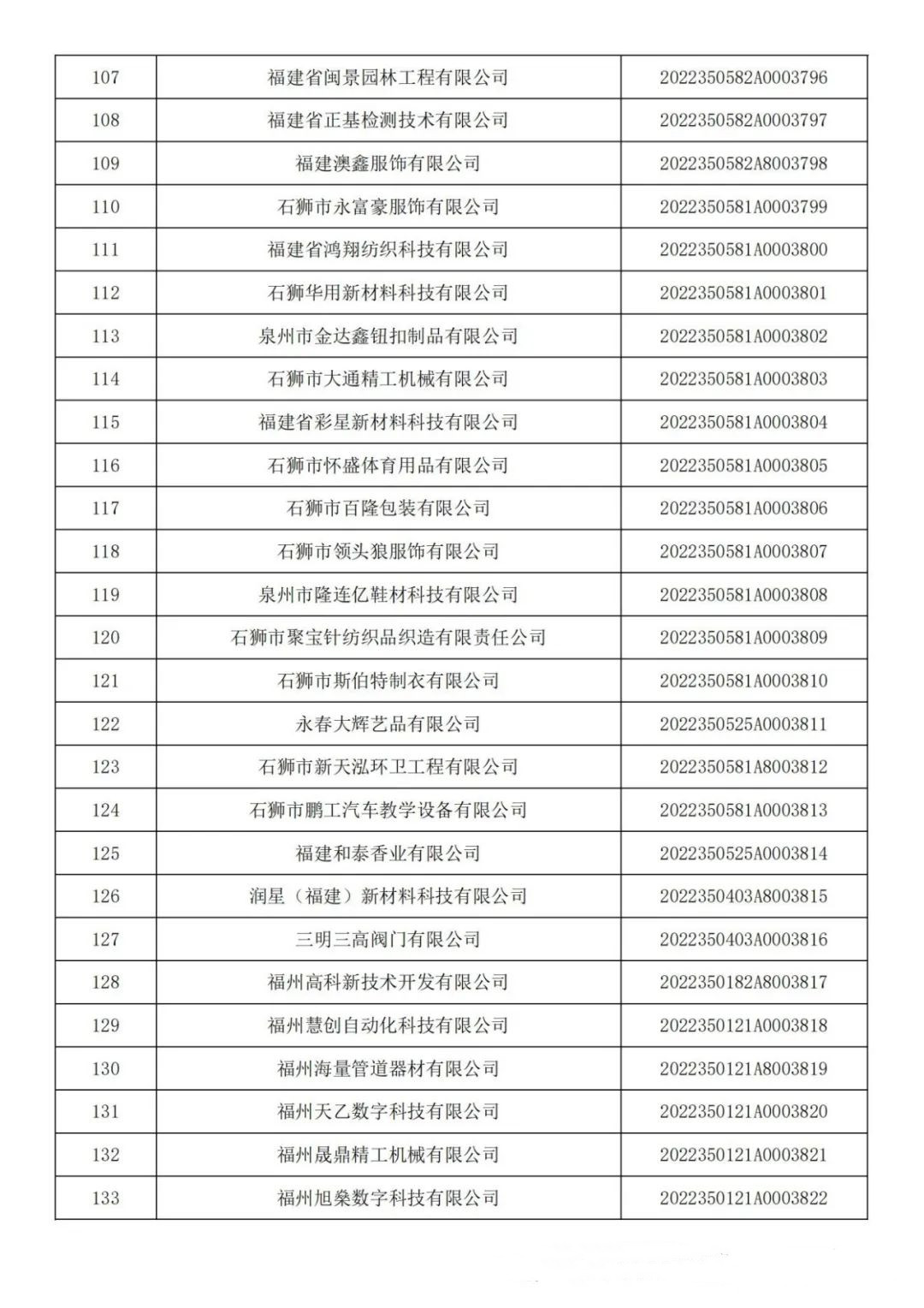 各有關(guān)單位: 根據(jù)《科技型中小企業(yè)評價辦法》(國科發(fā)政〔2017〕115號)和《科技型中小企業(yè)評價服務(wù)工作指引》(國科火字〔2022〕67號)要求,經(jīng)公示通過,現(xiàn)將福建省2022年第六批入庫的388家科技型中小企業(yè)名單(詳見附件)予以公告。 附件:福建省2022年第6批入庫科技型中小企業(yè)名單